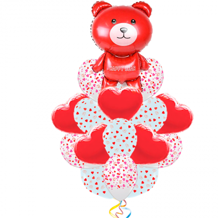 Букет "Праздничный Мишка", состоящий из 15 латексных воздушных шара и 1 большой фигуры, обязательно подарит счастье и море позитивных эмоций! Сделайте Вашу любимую самой счастливой в международный женский день, подарите воздушные шары 8 марта!