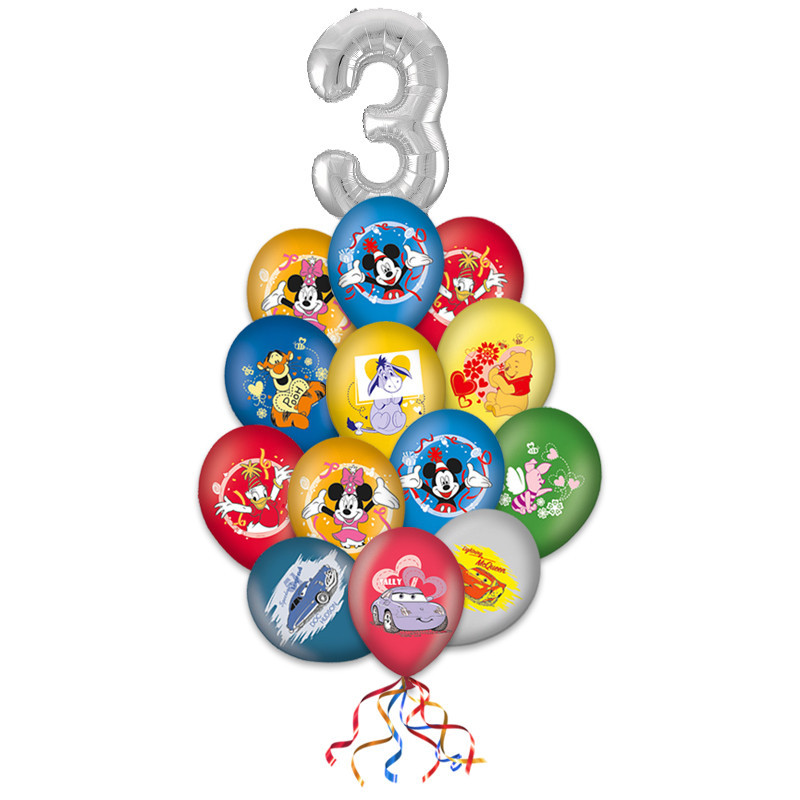 Букет на день рождения «Счастливый день» состоит из 16 разноцветных латексных воздушных шаров с принтом персонажей мультфильмов и большой фольгированной цифры (на ваш выбор). Этот букет сделает ваш праздник не забываемым и зарядит позитивом.