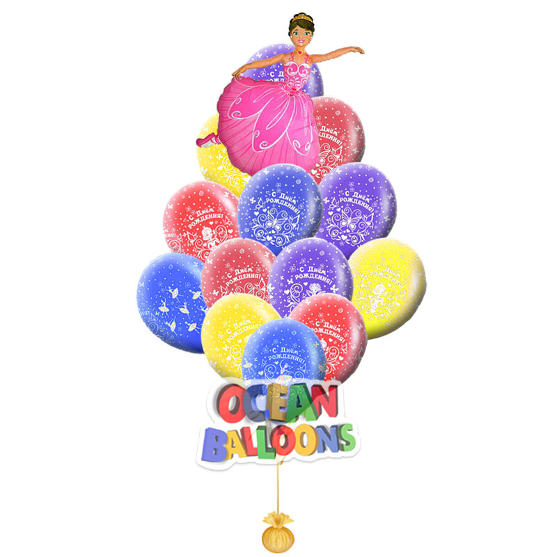 Композиция из ярких воздушных шаров позволит любой девочке почувствовать себя принцессой на празднике. Композиция состоит из 10 обработанных воздушных шаров и 1 фольгированной фигуры!