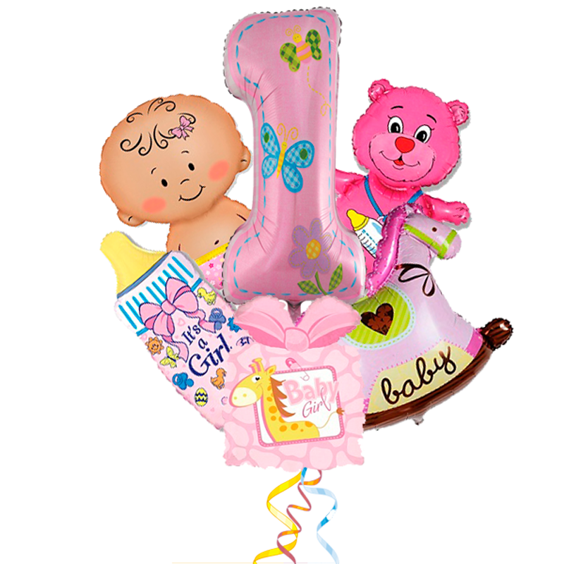 Композиция первый День Рождения «It’s a girl» из 6 фольгированных фигур будет самым лучшим подарком на рождения девочки, и принесет много положительных эмоций в такой хороший день.