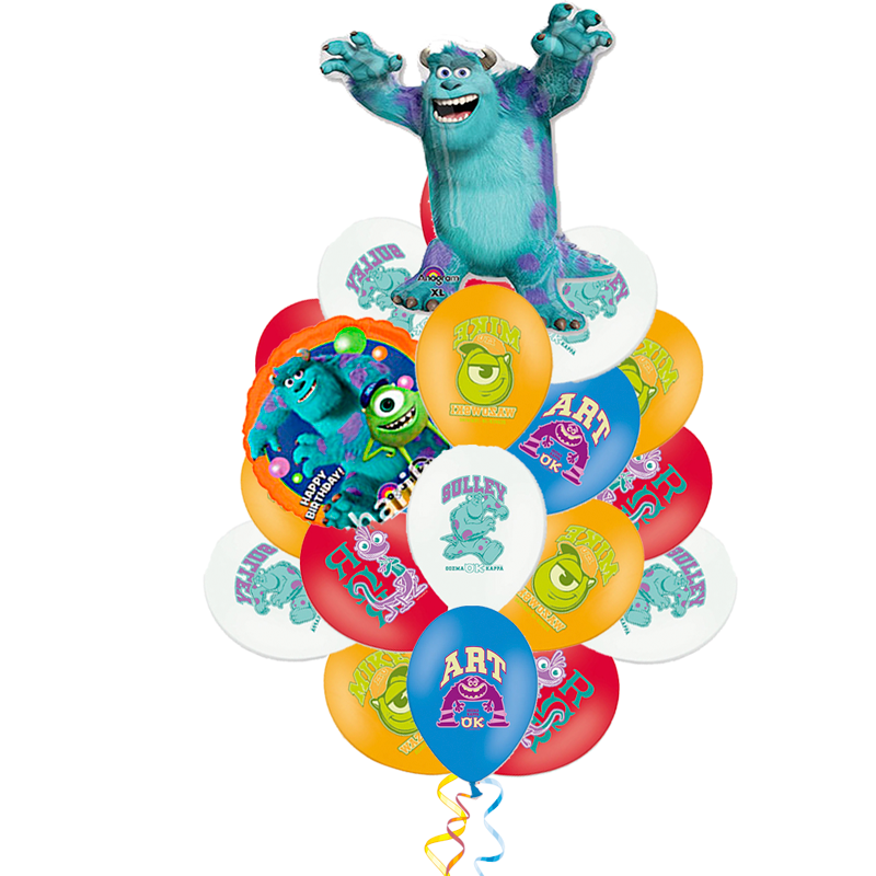 Букет "Корпорация монстров", состоящий из 20 латексных воздушных шаров с рисунком, 1 фольгированного круга и 1 большой фольгированной фигуры, сделает счастливее не только ребенка, но и взрослого! Герои любимого мультфильма сделают Ваш праздник красивым и неповторимым, ведь лучшим подарком станут воздушные шары!