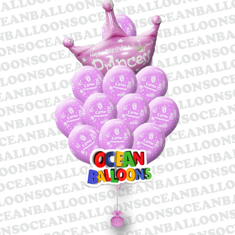 Праздничная композиция «День рождения принцессы» в интернет-магазине OCEAN BALLOONS. Заказать с доставкой! Тел.: +7 (495) 773-43-75.
