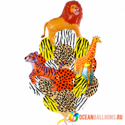 Озорная композиция "Зоопарк" из 15 латексных шаров и 3 фольгированных фигур животных (Лев, Тигр, Жираф ).