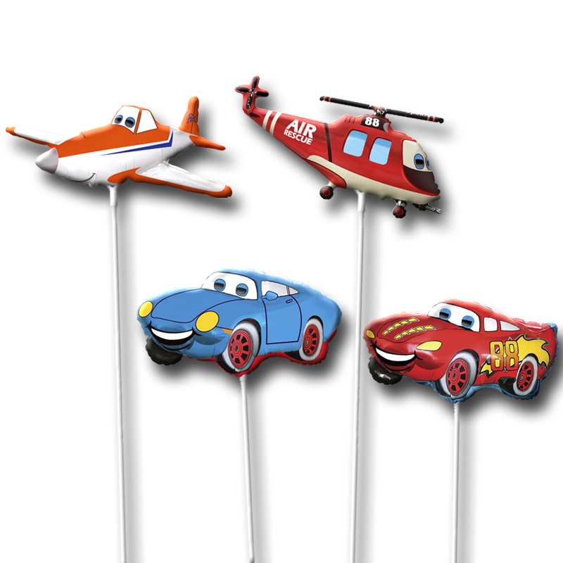 Набор воздушных шаров на палочке с изображениями героев любимых мультфильмов сделают счастливым и радостным любого ребенка.