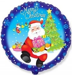 Фольгиыованый шар на Новый Год (18/46 см) Круг, Санта с подарками.