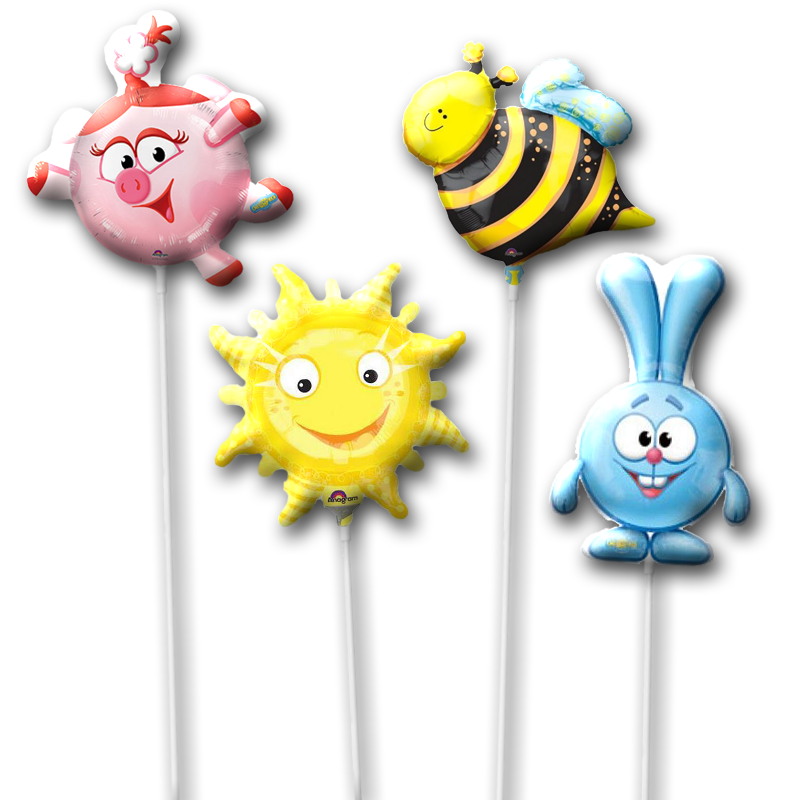 Набор из фольгированных шариков на палочке «Солнечные Смешарики» сделает счастливым любого ребенка. Набор включает в себя воздушные шары с изображением Кроша, Нюши, Пчелы и Солнышка. Набор состоит из 4 фольгированных воздушных шаров на палочках!