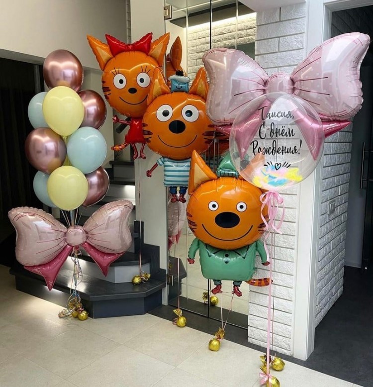Готовое решение «Три кота на празднике» в интернет-магазине OCEAN BALLOONS. Заказать с доставкой! Тел.: +7 (495) 773-43-75.