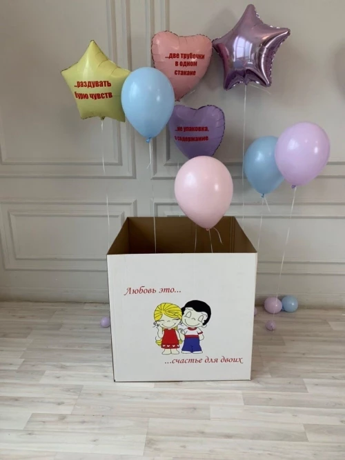 Коробка с шарами «Что такое любовь» в интернет-магазине OCEAN BALLOONS. Заказать с доставкой! Тел.: +7 (495) 773-43-75.
