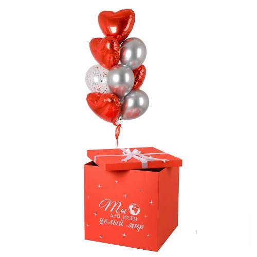 Коробка с шарами «Сердца и серебро» в интернет-магазине OCEAN BALLOONS. Заказать с доставкой! Тел.: +7 (495) 773-43-75.