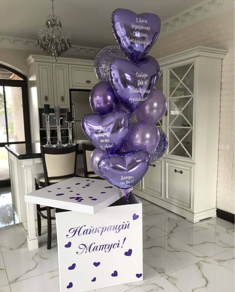 Тип:С индивидуальной надписью, С конфетти, Шары в коробке, Коробки с шарами на день рождения