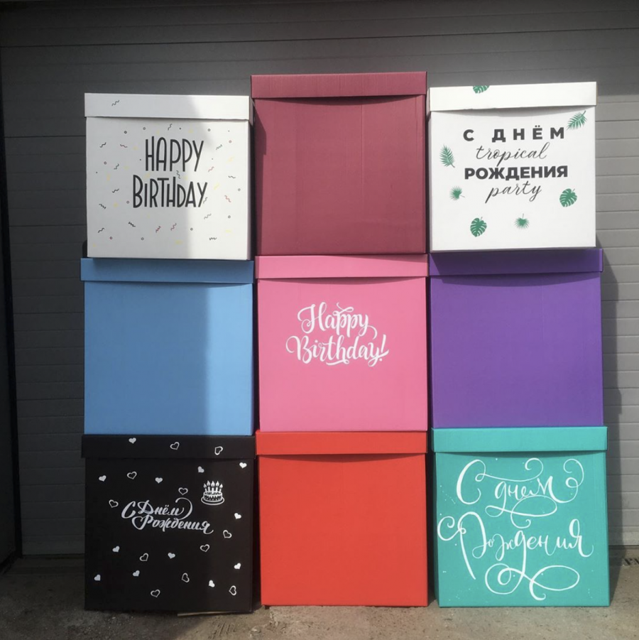 Коробка для воздушных шариков цветные 80х80х60 (без надписи) в интернет-магазине OCEAN BALLOONS. Заказать с доставкой! Тел.: +7 (495) 773-43-75.