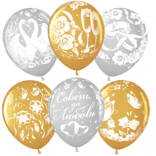 Воздушный шар Белоснежные лебеди (свадьба), Серебро Золото , металлик