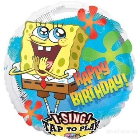 Большой (d = 71см) воздушный шарик из фольгированного материала c тематическим музыкальным сопровождением, продающийся в яркой упаковке ненадутым. Принт на шарике - знаменитый герой мультфильма Спанч Боб, для которого станет почетной обязанностью поздравление ребенка с именинами или Днем рождения. Если как следует хлопнуть по шару, из него зазвучат слова "happy birthday to YOU!".