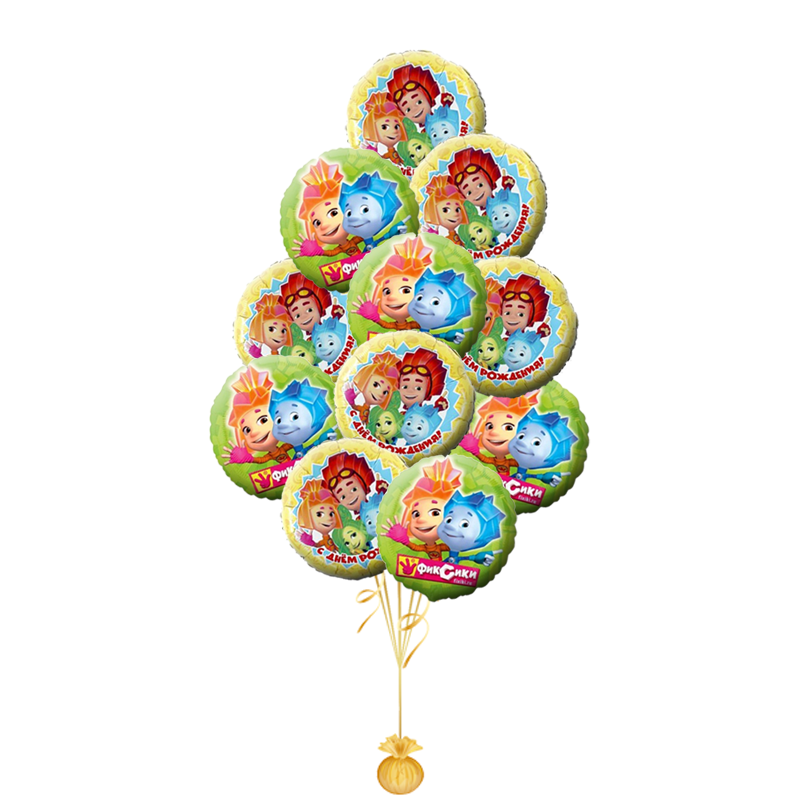 « С днем рождения Фиксики» композиция из 11 воздушных шаров в интернет-магазине OCEAN BALLOONS. Заказать с доставкой! Тел.: +7 (495) 773-43-75.