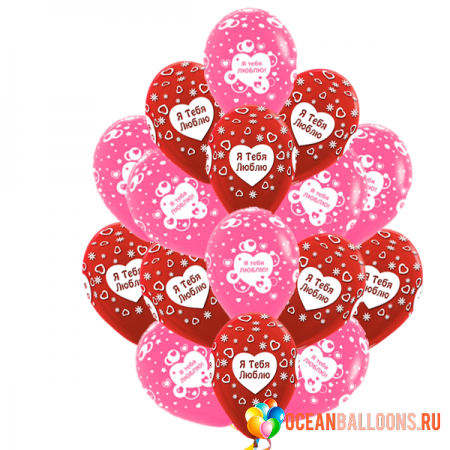 Романтичный букет из 20 латексных шаров с текстовым принтом "Я тебя люблю".