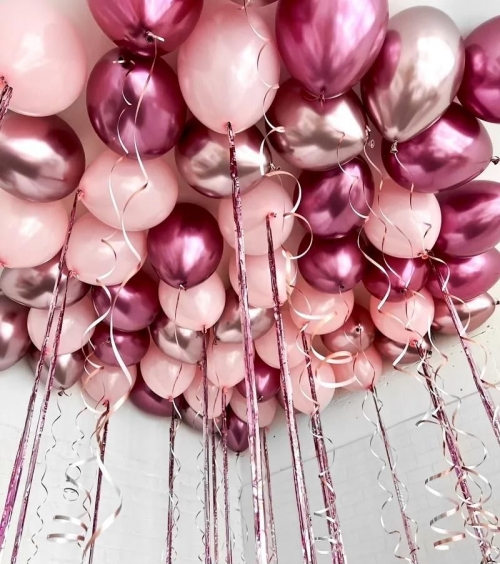 Шарики хром розовое золото фуше и розовый с дождиками 10 шт в интернет-магазине OCEAN BALLOONS. Заказать с доставкой! Тел.: +7 (495) 773-43-75.