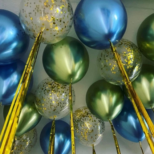 | Группа: | Шарики хром синий зеленый и шарики с конфетти золото с дождиками |