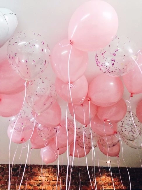 Шары под потолок розовые и прозрачные в интернет-магазине OCEAN BALLOONS. Заказать с доставкой! Тел.: +7 (495) 773-43-75.