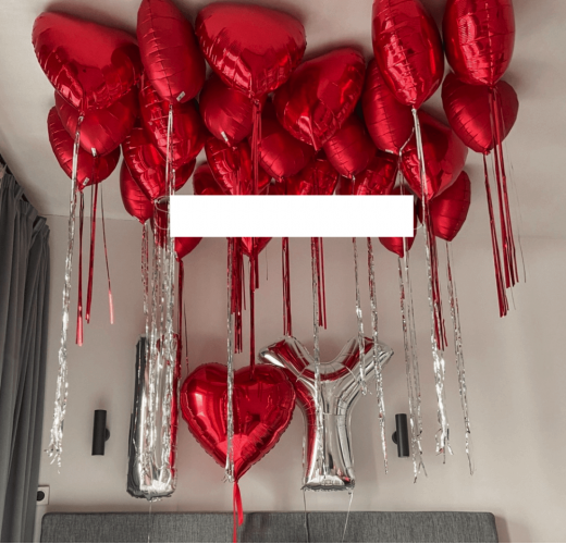 - Фольгированные сердечки красные с дождиками 15 шт;
