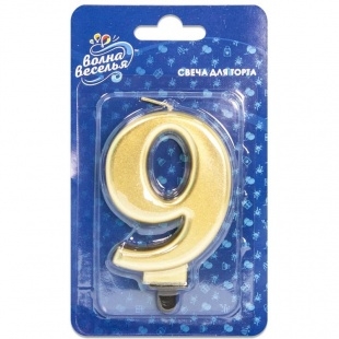 Свеча цифра 9 большая золотая в интернет-магазине OCEAN BALLOONS. Заказать с доставкой! Тел.: +7 (495) 773-43-75.